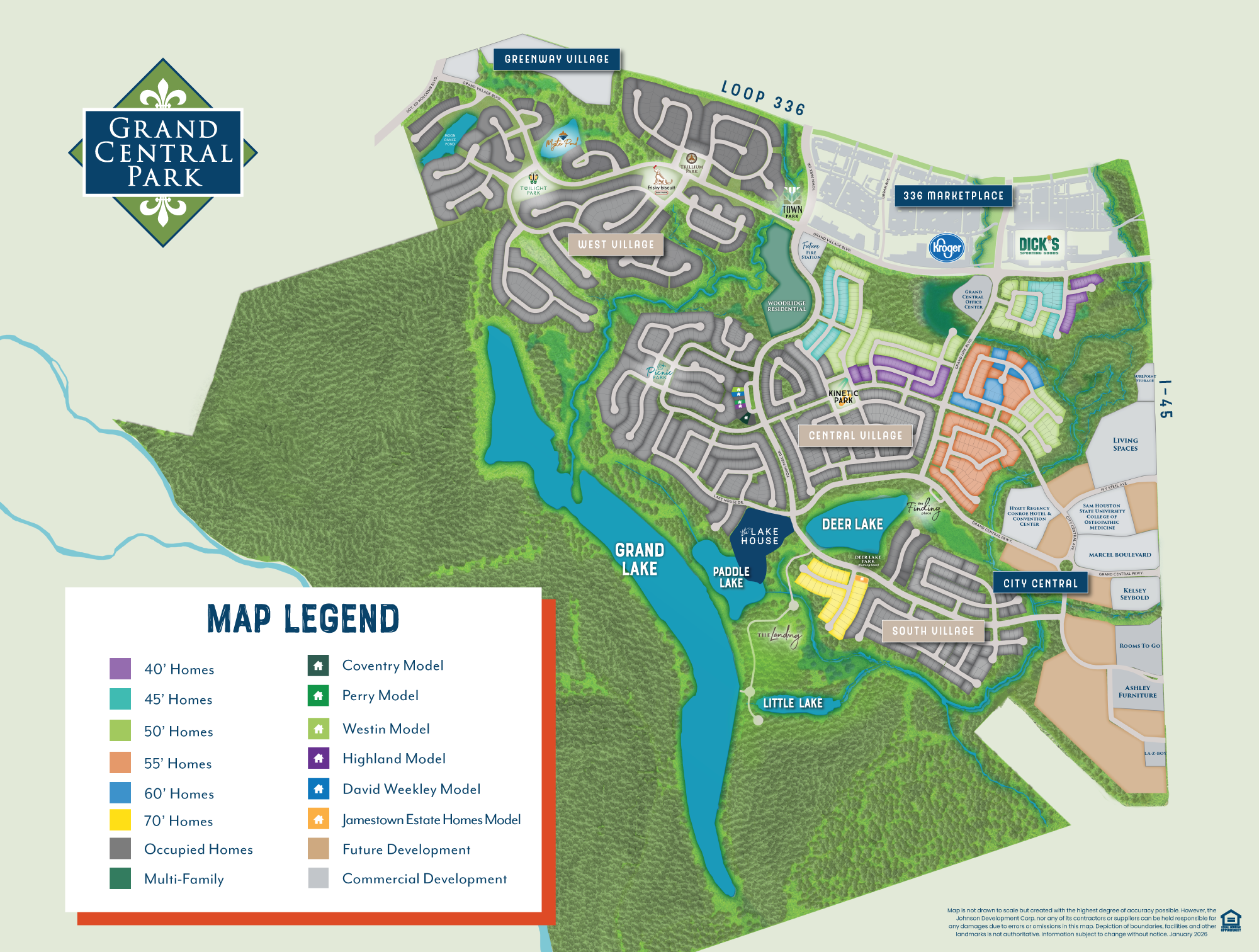 As with every Johnson Development community, Grand Central Park in Conroe, TX, features only world-class luxury builders whose exceptional craftsmanship and exquisite design and style are second to none. Click here to view the model home map.